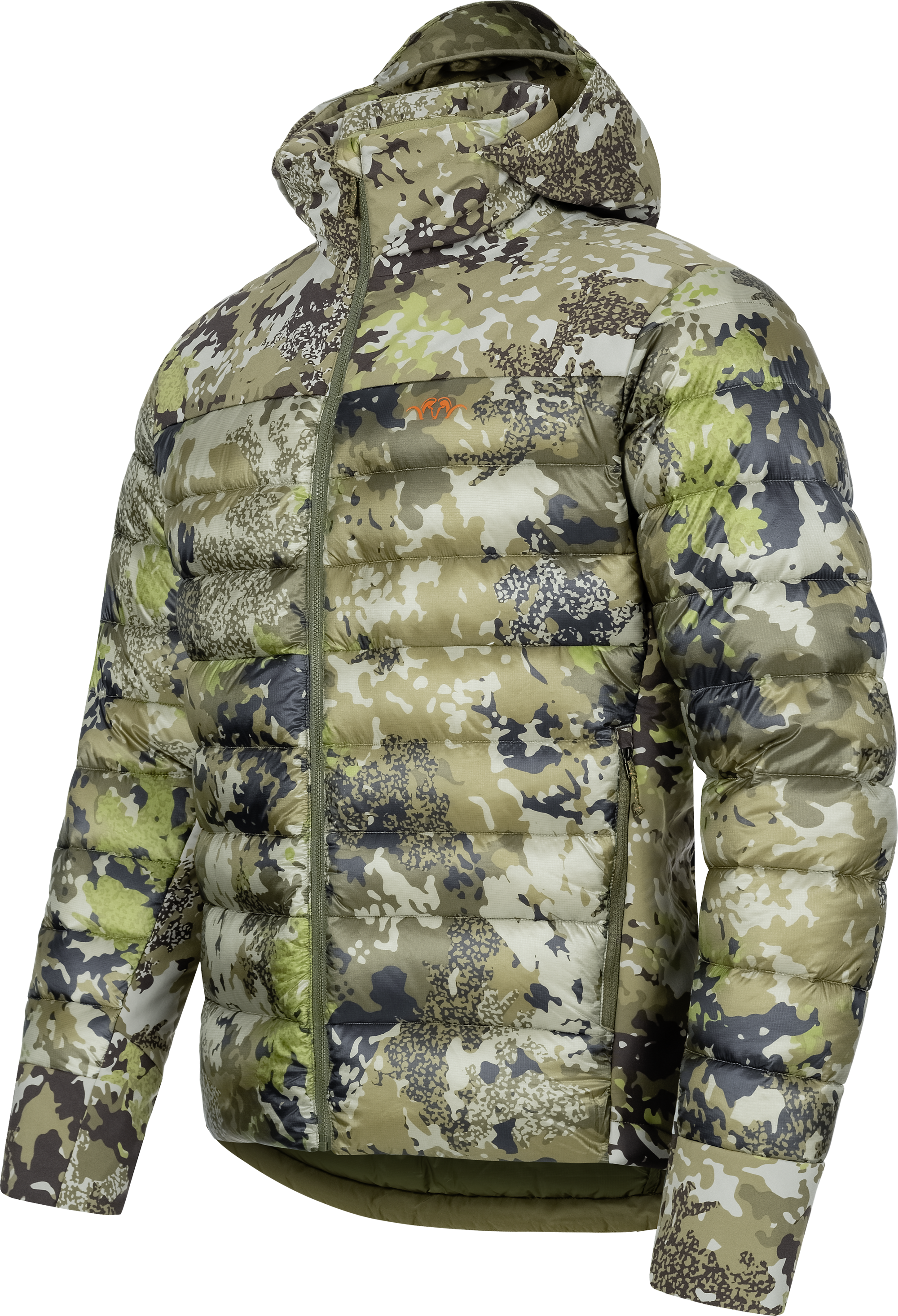 Dauen-Hybrid-Jacke für angenehmes Beobachten. Spendet unterwegs sofor tige Wärme und weist gleichzeitig unangenehmeres Wetter ab.